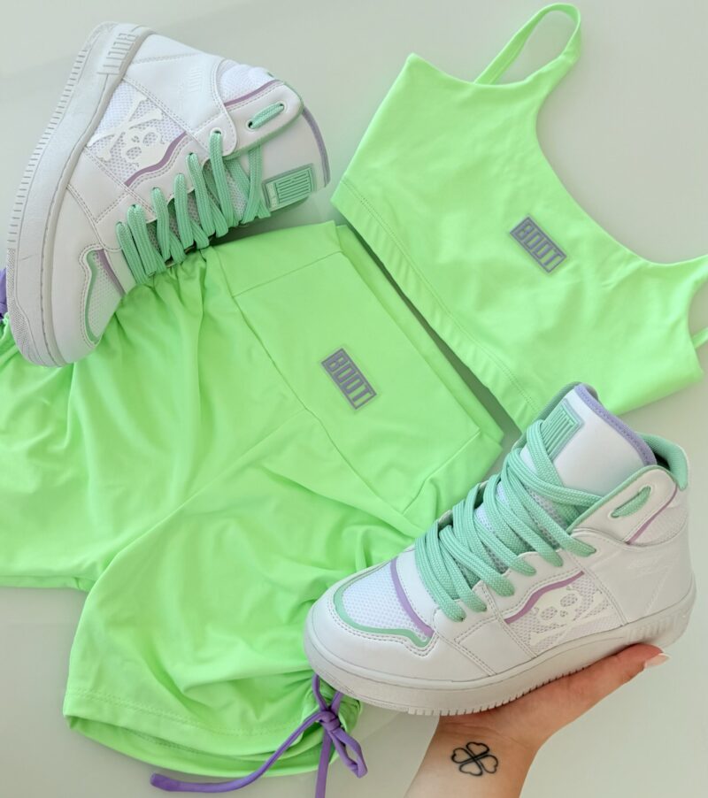 – Sintético Esportivo (Vegano) nas Cores Branca, Menta, Color, Juice e Pink.